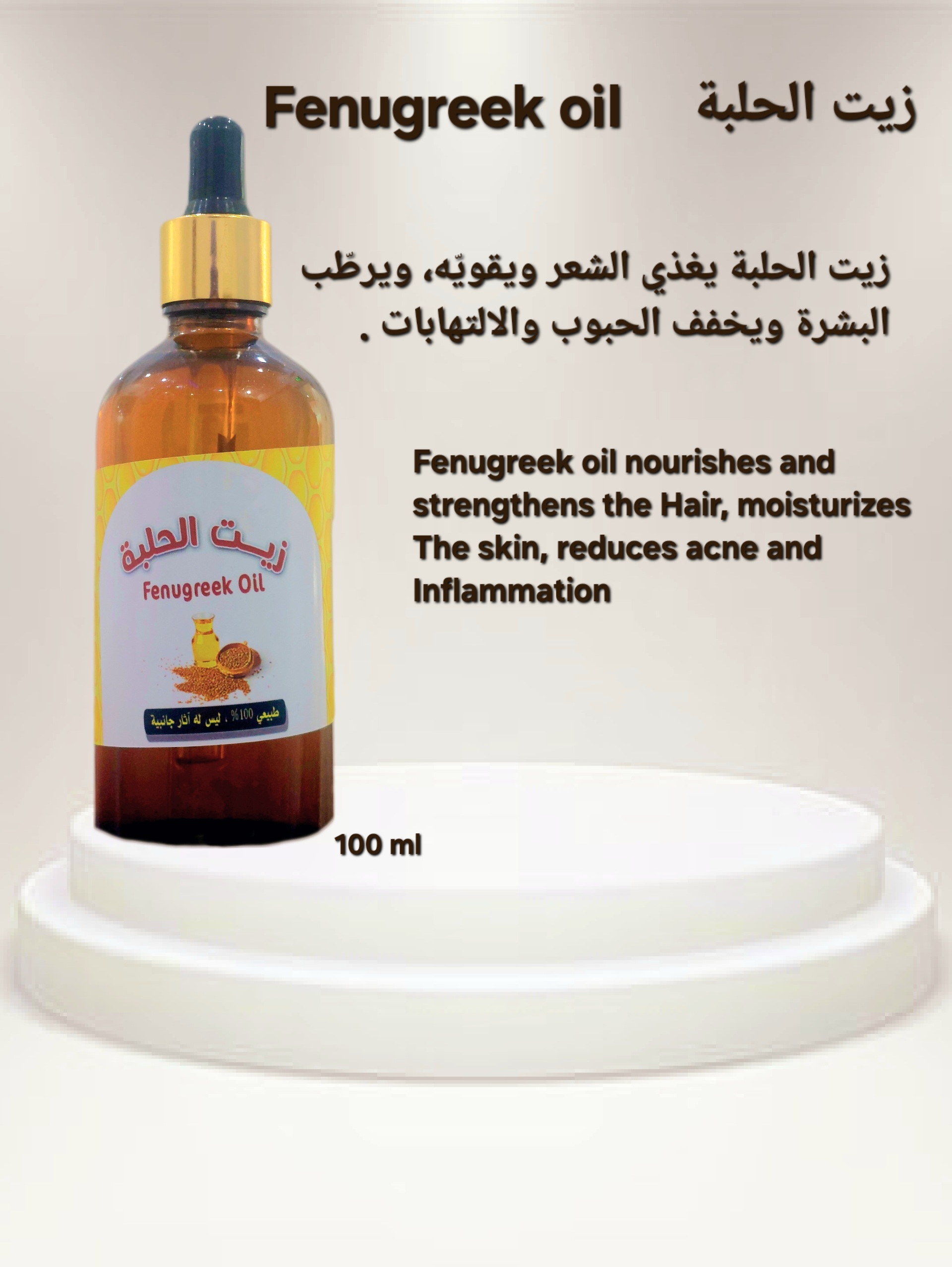 Fenugreek oil nourishes and strengthens the Hair, moisturizes the skin, reduces acne and Inflammation